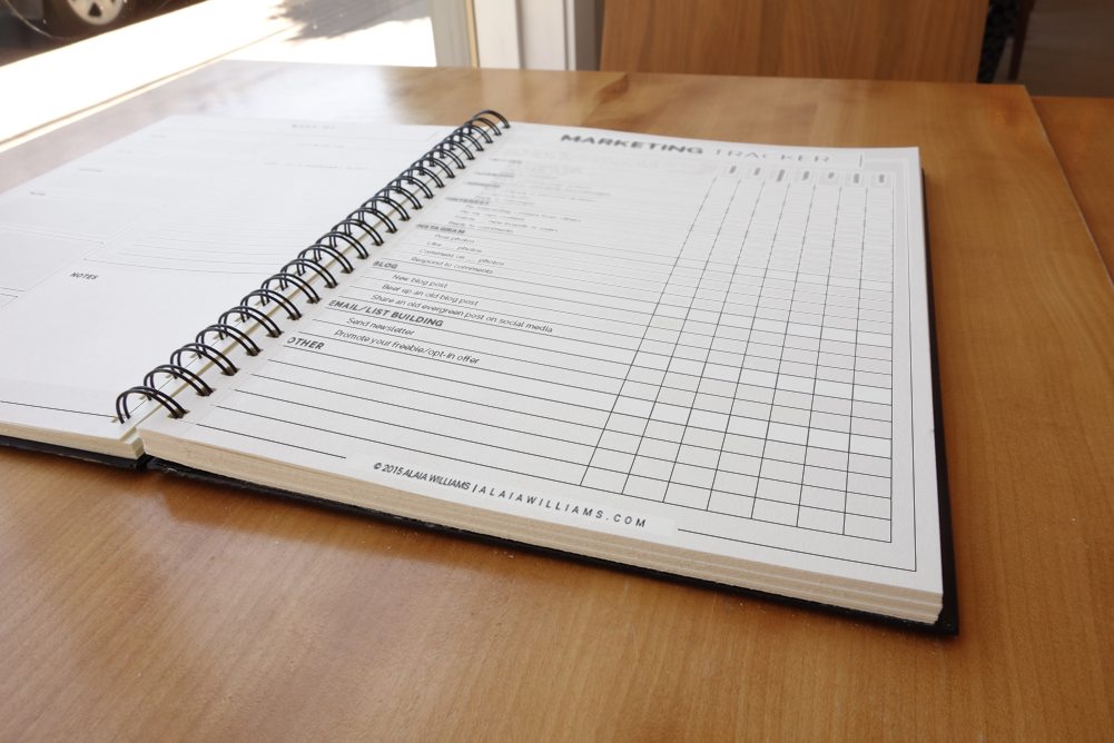 This marketing tracker is part of The Next 12 Months Months: Weekly Planner. See the entire planner in action on my website: http://alaiawilliams.com/planner