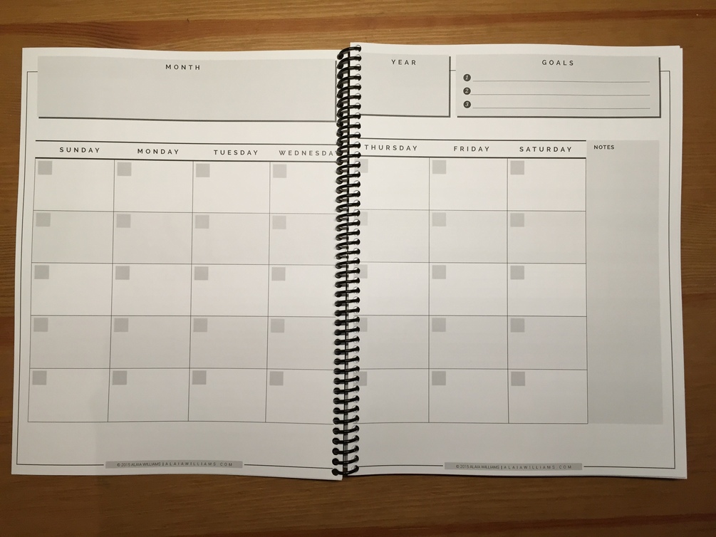 This practical planner features monthly and weekly planning space, marketing and stats tracking sheets, review pages and note pages.